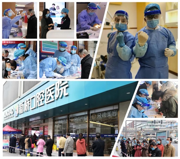 病毒無情,人間有愛!守望相助,攜手抗疫!自疫情爆發以來,新橋口腔一方面積極做好安全復工,另一方面以實際行動參加各類防控工作以及為部分政企單位提供防疫物資援助等。其中,德陽院區抽調醫務人員參與醫療志愿者服務,負責包括為居民測體溫等防疫工作。成都院區各門店先后向社區、街道辦、媒體機構、行業協會等,提供醫用口罩、消毒酒精等防疫物資。同時,新橋口腔的安全復工,有序開診,更是以實際行動彰顯品牌擔當。