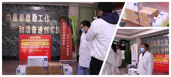 自新冠疫情發生以來,街道和社區作為服務民生的基層單位,承擔著轄區抗擊疫情“第一道防線”的重要作用。為響應習近平總書記“打贏防疫攻堅戰”的號召,幫助基層單位筑牢疫情防線,今天(3月16日)下午,新橋口腔向成都市武侯區漿洗街街道辦事處捐贈一批含醫用口罩、酒精、消毒液、手消液等在內的防疫物資,以實際行動踐行社會責任和企業擔當。