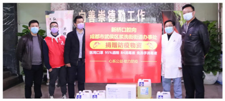 其中,德陽院區抽調醫務人員參與醫療志愿者服務,負責包括為居民測體溫等防疫工作。成都院區各門店先后向社區、街道辦、媒體機構、行業協會等,提供醫用口罩、消毒酒精等防疫物資。這一系列的舉動,不僅拉近了新橋口腔和社區“鄰里”的距離,凝聚起同舟共濟戰勝疫情的信心和力量,更充分彰顯了新橋口腔的家國情懷和使命擔當。