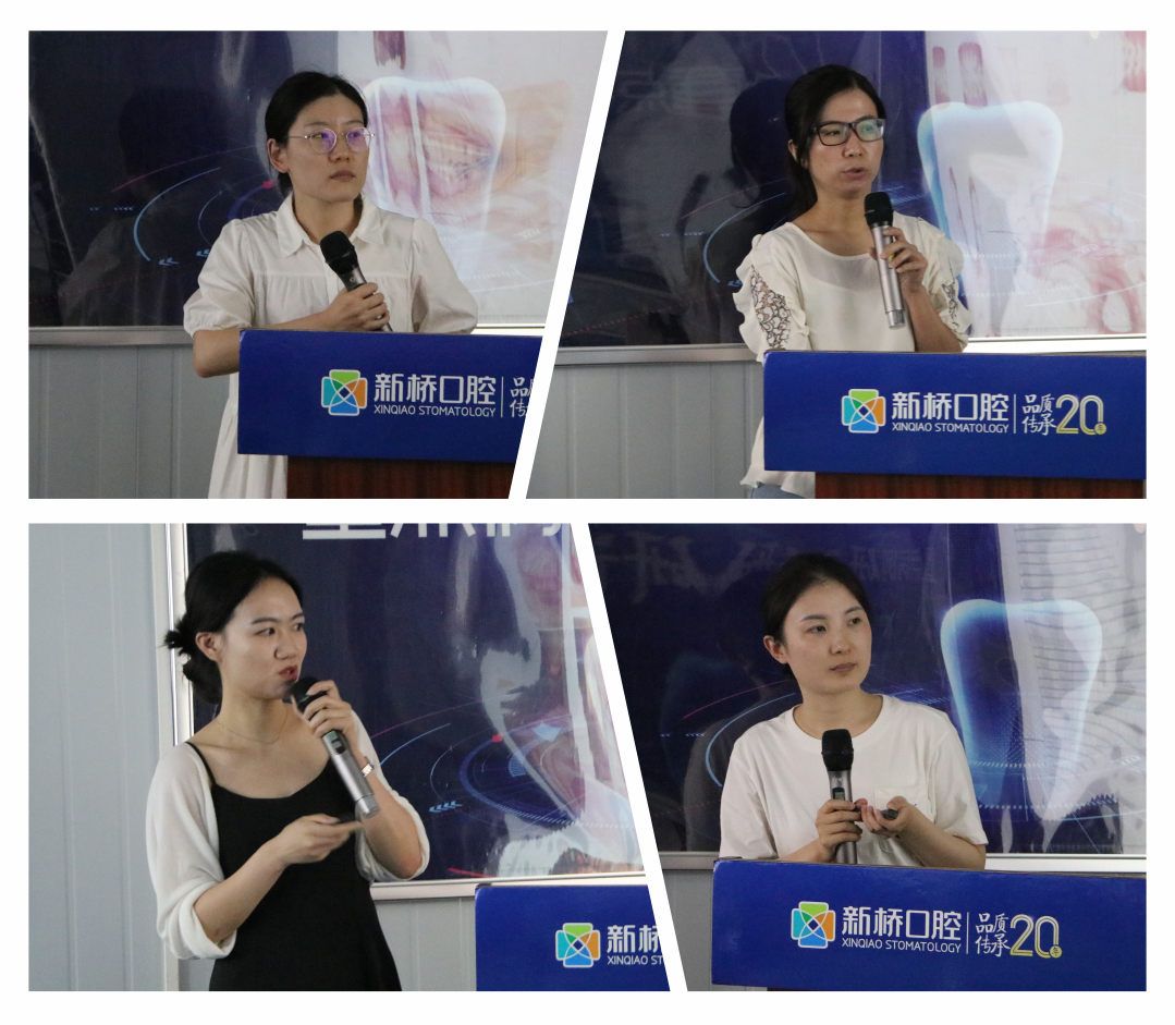 隨后,新橋口腔成都衣冠廟院區郝璐醫生、高新院區吳宛玲醫生、光華院區袁曦醫生、玉雙院區張橋醫生分別以“隱形矯治磨牙近中移動”“缺失4顆2的深覆合病例討論”“擺式矯治器推磨牙向后”“隱形矯正治療重度深覆合”為題,匯報了近期接診的疑難病例的矯治思考和心得體會。