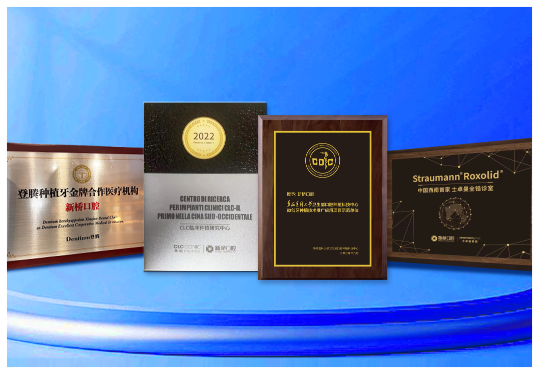 為充分滿足不同種植適應癥和顧客個性化需求,新橋口腔合理布局種植體產品線,篩選品質性能出眾、臨床反應良好的主流種植體品牌供臨床使用。多年來,新橋口腔不僅致力于為顧客提供渠道可溯源的優質種植體,更通過與各大種植體品牌開展臨床科研合作,率先投建數字化種植術前特檢科和數字化種植中心,引入國際前沿的數字化拍片、口掃、3D導板種植設備和技術,有效提升種植效率、安全性和舒適度。術后臨床跟蹤結果顯示,新橋口腔種植牙中遠期成功率穩居行業前列,曾先后被授牌“華西醫科大學衛生部口腔種植科技中心微創牙種植技術推廣應用項目示范單位”、“瑞士士卓曼(ITI)西南首家全鋯診室”“意大利CLC臨床種植研究中心”“韓國登騰(DENTIUM)種植牙金牌合作醫療機構”。