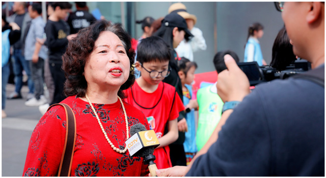 和挑戰者同樣緊張忙碌的,是口福工程公益服務區的志愿者們。因為口福工程新一季福利發布,口腔健康篩查、咨詢和口腔福利領取工作桌前都排滿了長隊,運動場上的歡呼聲和這里熱鬧的交談聲匯集在一起,將社區幸福秀的美好主題體現得淋漓盡致。水井坊社區居民肖阿姨在接受成都電視臺記者采訪時高興地說:“我們老年人在這項活動中既鍛煉了身體,又領到很多口腔福利,真是一舉兩得!非常感謝各舉辦單位,希望口福工程越來越好!”
