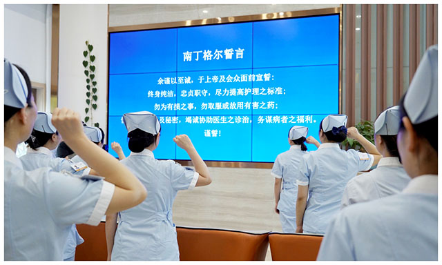 表彰大會最后,在新橋口腔成都蜀漢院區優秀護士劉歡的帶領下,在場護理人員重溫了南丁格爾誓言。莊嚴肅穆的宣誓儀式,一句句鏗鏘有力的誓言,大家感受著提燈女神洗滌心靈的諄諄教誨 ,也傾注著自己對護理事業的無限深情。