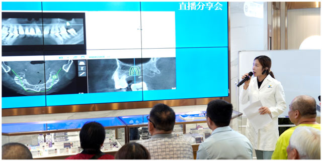 與此同時,數字化診療中心主任、華西口腔碩士李丹和成都蜀漢院區預診主任楊卓蕓在現場為觀眾深入淺出地解析了手術的每一個關鍵步驟,從術前的方案規劃、3D打印導板的應用,到術中的精確操作,再到如何進行術后的護理與跟蹤,全方位呈現了數字化種植技術的精準與高效。