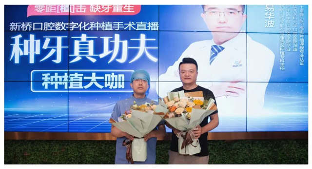 今天(2024年6月26日)上午,新橋口腔“零距植擊 缺牙重生”數字化種植手術直播在成都衣冠廟院區圓滿舉行。應廣大群眾呼聲,本次直播規??涨皵U大,新橋口腔四城十院候診區均同步直播了本場種植手術,不僅吸引了一百多位缺牙市民親自前來,更有近千位觀眾實時在線,共同圍觀了39歲的劉先生僅用10分鐘實現缺牙重生的全過程,見證了新橋口腔“種牙真功夫”。