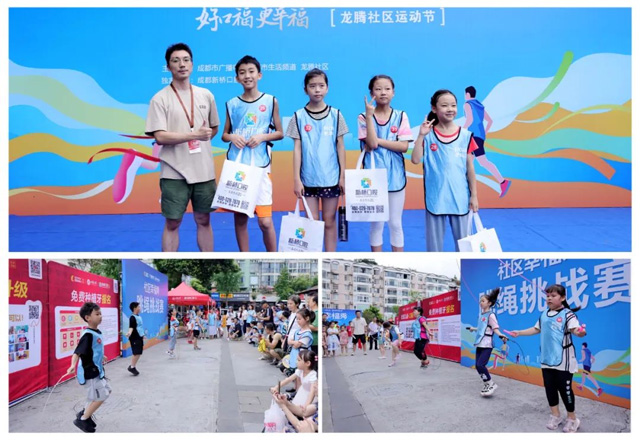跳繩挑戰賽是種牙口福工程進社區的經典IP,活動現場,只見數十名小選手摩拳擦掌、蓄勢待發,哨音吹響后便立刻搖動手中的繩索,你追我趕、分毫不讓。觀眾們紛紛為其加油鼓勁,也因緊張的賽事而激動不已。經過一輪又一輪的激烈角逐,最終張可嵐和何云梓晨兩位小選手以一分鐘180個的驚艷成績,雙雙奪得此次龍騰社區站跳繩挑戰賽的冠軍。