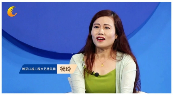 熱烈掌聲中,種牙口福工程文藝秀先鋒楊玲大姐、國球秀健將孟慶波叔叔和廚藝秀達人周月英阿姨率先登場。在與成都電視臺知名主持人、種牙口福工程媒體監督員文靜的問答互動中,他們講述了自己在種牙口福工程社區活動中收獲的幸福體驗。