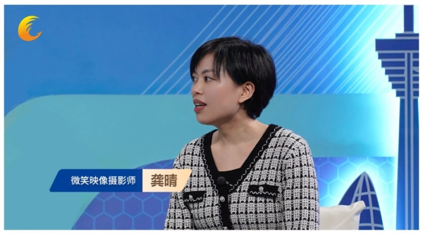 節目現場,主持人文靜為大家重播了一則2024年5月的央視新聞報道。報道記載了龔晴耗時8個月,在新橋口腔拍攝3000多張微笑,并于世界微笑日前夕開辦《微笑映像》攝影展的經歷。視頻中,一張張生動的笑臉,洋溢著新橋口腔顧客重拾口腔健康的喜悅與幸福?;赝退信臄z者的不期而遇,龔晴感觸頗深。
