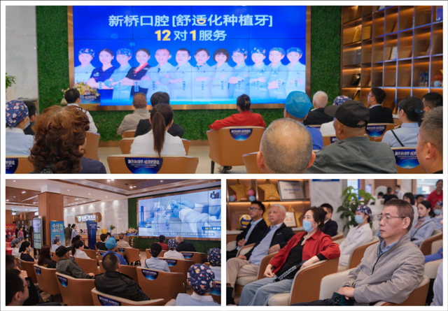 “口腔舒適化診療不只是單純的技術,而是一種整體的醫療服務理念。”秉承這樣的全局觀念,“金標準”除了技術的革新與診療行為規范外,還以顧客舒適體驗為核心,以安全高效為原則,通過專屬人員配置、服務體系完善、診療環境優化等細致入微的人性化服務增設,為種牙顧客構筑起獨家特色的“12對1”全方位舒適就診體驗?;顒蝇F場,新橋口腔舒適化種植牙團隊各崗位代表集中亮相,包括種植醫生、麻醉醫生、內科醫生、陪診專員等在內的12位醫護及服務人員聯合簽署《品質服務承諾書》。未來,新橋口腔每一例舒適化種植牙,都將配備12人專業團隊,一人一崗,專崗服務,讓顧客在重獲好口福的同時,感受到診療過程的溫度和尊重。