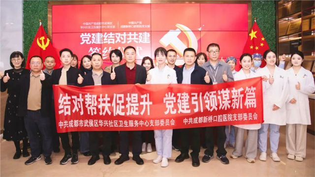 為深入貫徹落實黨的二十大精神,根據《區委衛健工委醫療機構黨建結對幫扶工作方案》要求,為深化公立醫療機構與民營醫院黨建“結對幫扶”機制,實現醫療機構黨組織優勢互補,10月23日,中國共產黨成都市武侯區華興社區衛生服務中心支部與中國共產黨成都新橋口腔醫院支部舉行結對共建簽約儀式。