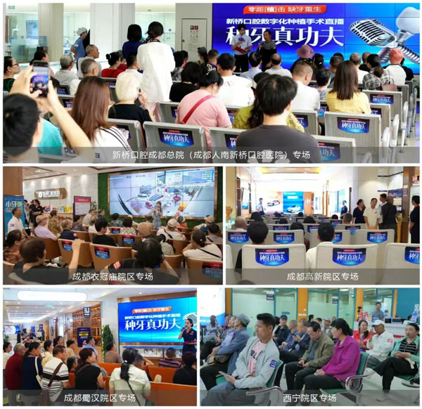 6月,新橋口腔“種牙真功夫”數字化種植手術直播分別在成都衣冠廟、蜀漢、高新院區以及西寧院區精彩舉行,并最終在新橋口腔成都總院(成都人南新橋口腔醫院)圓滿收官。直播全程可視化,直擊操作細節,并有種植專家實時解析手術要點,消除種牙認知盲區。新橋口腔憑借硬核技術實力為缺牙市民搭建起安心種牙的信任橋梁,打造“看得見、信得過”的種牙體驗。